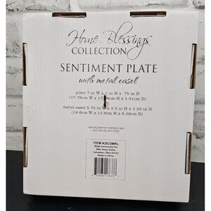 New 7x7" White Home Blessings Family Sentiment Plate w/ Metal Easel Gift Decor