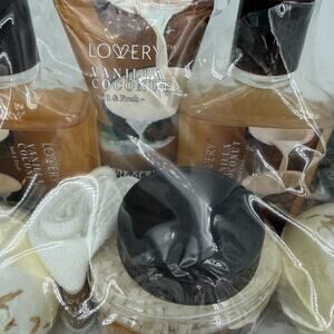 Indulge in a luxurious at-home spa experience with this Lovery Vanilla Coconut Deluxe 8-Piece Bath & Body Set. Beautifully arranged in a woven gift basket, this set includes everything needed for ultimate relaxation—soothing scents, hydrating formulas, and pampering essentials. Perfect as a gift or for treating yourself.