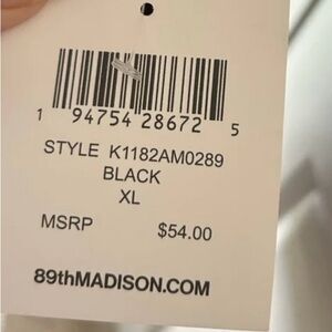 New 89th Madison top woman’s size xlarge black with bling shirt
