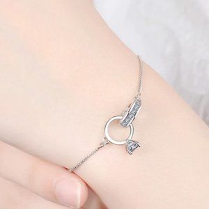 New!! 925 Silver Heart Double Circle Geometric Charm Bracelets