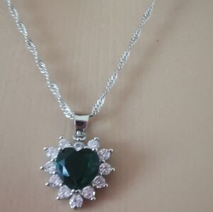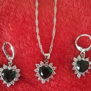 New 925 Silver Necklace and Earrings set with Emerald Gemstone and Rhinestone