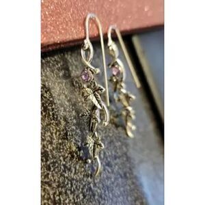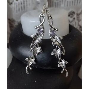 New - 925 Silver Plated Inlaid Boho Engraved Leaf Drop Dangle Earrings