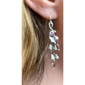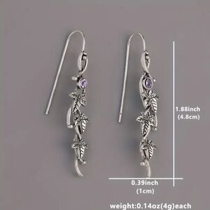 These silvery drop dangle earrings with engraved leaf design are perfect for adding a boho touch to your outfit.
