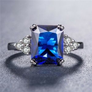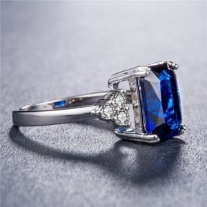 New 925 Silver Princess Cut Blue Sapphire Ring
