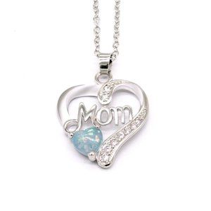 New 925 Silver Sim. Diamond Opal Mom Heart Necklace