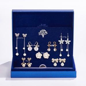 New 925 Silver small incense earrings one week Stud set Korean long butterfly temperament ear accessories graduation season gift, 7 pairs set
