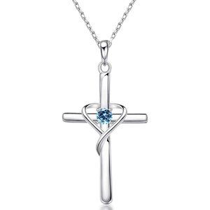 New 925 Sterling Silver Cross Necklace for Women Men 5A CZ Birthstone Ne…