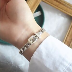 New 925 Sterling Silver Cuban Chain Link Belt Buckle Bracelet