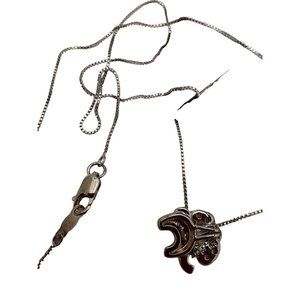 New .925 Sterling Silver Diamond 3/4" Elephant Pendant Necklace 20" Chain NIB