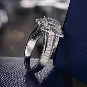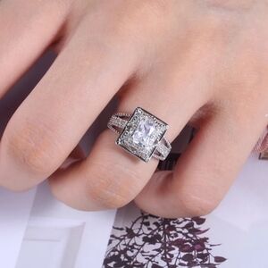 Classic Style Engagement Rings for Women Prong Setting Square Cubic Zirconia Elegant