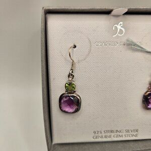 New 925 Sterling Silver Peridot Amethyst Earrings Dangle