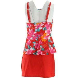 New $99 2 pc New Isaac Mizrahi Live! Floral Peplum Tankini with Skirt Red Flame