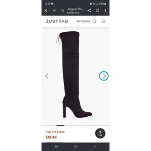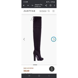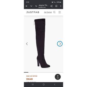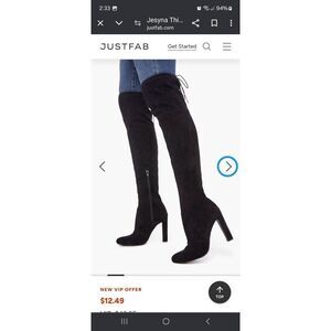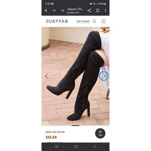 New Has Box, but Box is Damaged, Women's Size 9E Extra Wide JustFab Black Faux Suede Jesyna Chunky Stacked High Heel Pump Over the Knee Thigh High Boots Sexy Pretty
