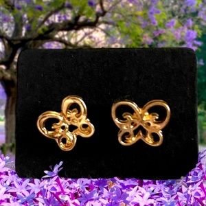 New 9k Gold Handmade Bohemian Minimalist Butterfly Stud Earrings