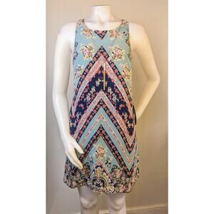 New A Byer Shift Dress Sz Large Midi Sleeveless Flowy Floral Boho Chevron Stripe