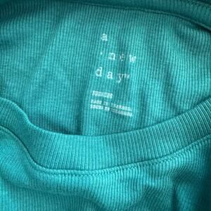 New A New Day Size Medium Green Ribbed Long Sleeve Top Crew Neck