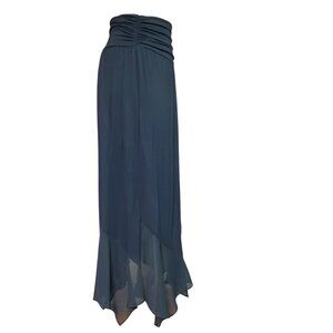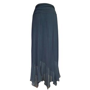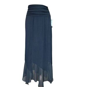 New AB Studio Super Soft Maxi Skirt w/ Chiffon Asymmetric Hem L Black #269J