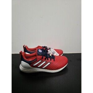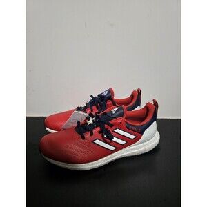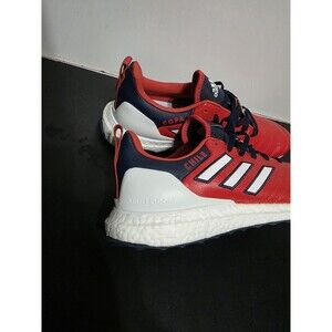 The product is a pair of Men's ADIDAS ULTRA BOOST X COPA WORLD CUP CHILE shoes in a red leather design, featuring a lace-up closure and hook & eye detail. These athletic sneakers are part of the adidas UltraBoost product line and are designed for running and jogging activities. The shoes are cushioned, comfortable, and breathable, making them suitable for summer, fall, and spring seasons. With a rubber outsole and standard shoe width, these shoes combine style with performance, showcasing a solid pattern and sports-themed design. Perfect for active men looking for quality footwear with a touch of captain america and boost characters. NO BOX