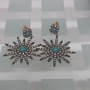 ADORNIA 14K Gold Vermeil Starburst Earrings with Turquoise & Swarvorski Accents