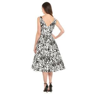 New! ADRIANNA PAPELL Women's Floral Print Fit Flare Dress Size 2 Black White