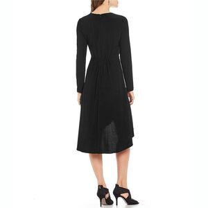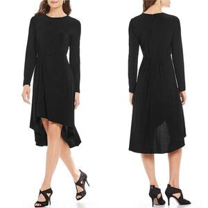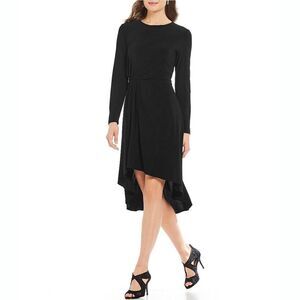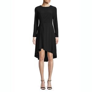 New! ADRIANNA PAPELL Women's Pleated High-Low Black Dress Size 10 Long Sleeve