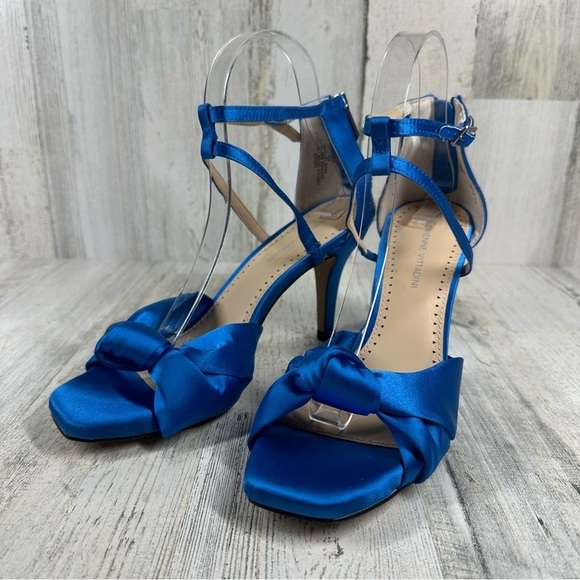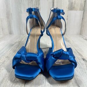 New ADRIENNE VITTADINI Xander Knotted Stiletto Sandal In Pool Blue Satin #619