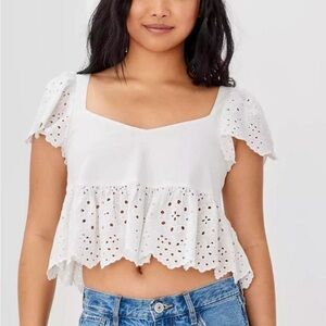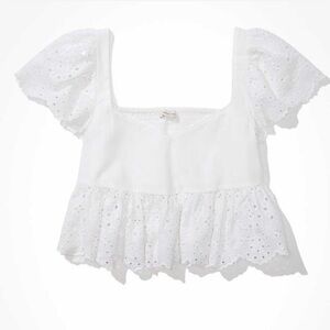 New! AE White Eyelet Embroidered Babydoll Ruffle Sleeve Crop top Size M and XXL