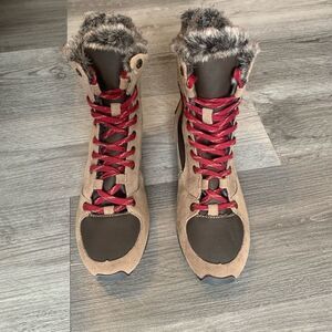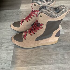New AEROSOLES 8 Leather Tan and Brown Winter Boots with Red Laces