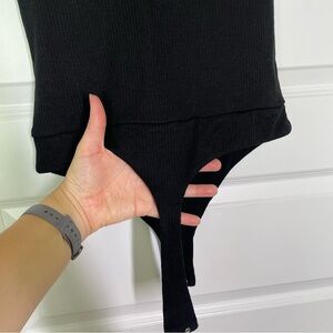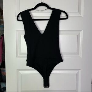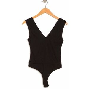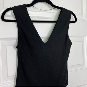New AFRM Mooni Ribbed Double V-neck Sleeveless Bodysuit In Black Size Small