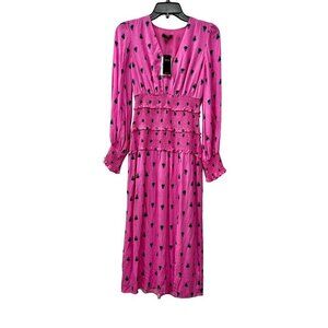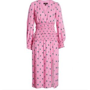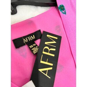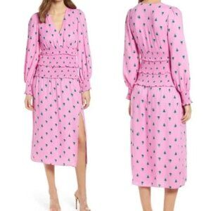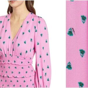 New AFRM Size XS Hazel Floral Smocked Long Sleeve Midi Dress Pink Fleur