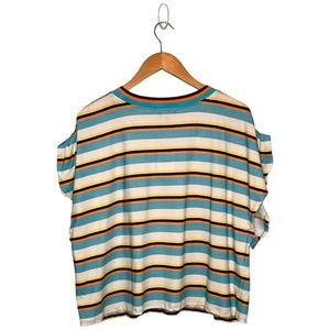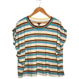 New AFRM Womens Size 3X Jorja Cropped Top Striped Ruched Cap Sleeves Multi