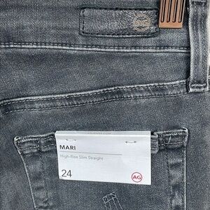 New AG Adriano Goldschmied Mari High Rise Slim Straight Jeans Faded Black Sz 24