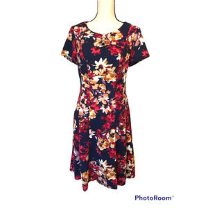 AGB new blue, red, multicolored floral midi dress (slightly below the knee), size 8.