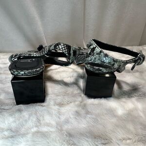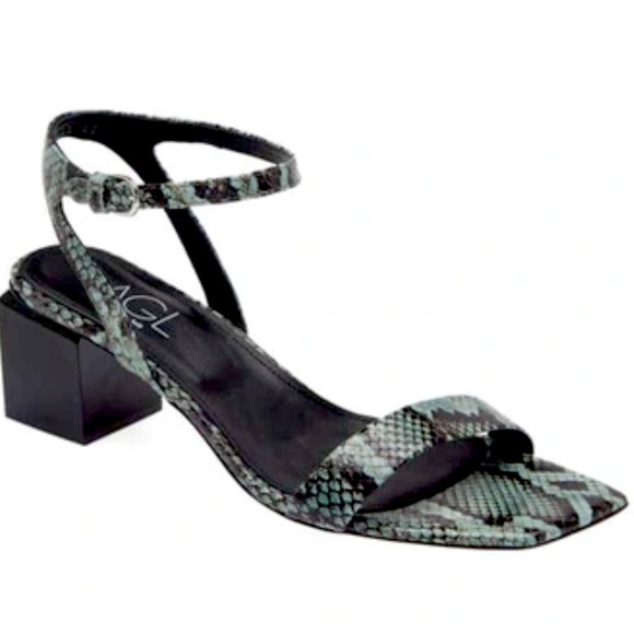 New AGL Angie Ankle Strap Snakeskin Print Leather Sandal Menthe-nero Size 8
