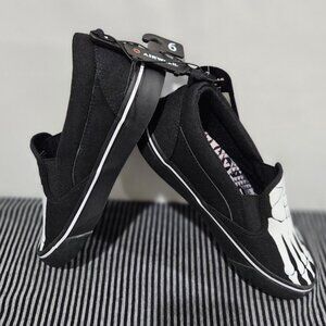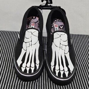 New AIRWALK GOTH BLACK CANVAS SKETETON TOES SLIP ON SNEAKERS SHOES 7 ½ Womans