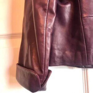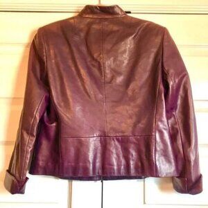 AKRIS Luxury Designer Lambskin Leather Jacket in an intoxicating Aubergine Burgundy Wine color. No one makes leather goods than the Italians and this gorgeous buttery soft Lambskin Jacket is no exception! This beautiful sophisticated jacket is versatile to wear professionally or casually to any venue where you wish to be dressed to impress!...