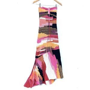 New A.L.C. Crochet Halter Knit Midi Dress Strapless XS ALC Y2K 90s Asymmetrical