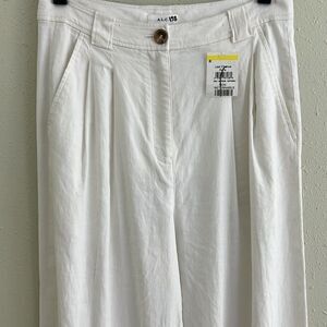 New A.L.C. Linen Blend Pleated Wide Leg Cream Trousers Size 2