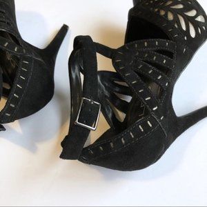 New ALDO Suede Perforated Platform Heels Black Gold Sz 5