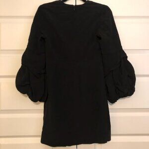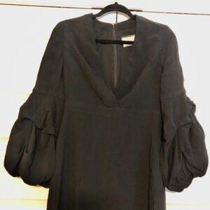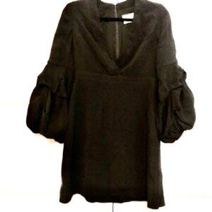 New ALEXIS Fia Black Crepe Mini Dress Deep V Long Ruched Sleeves SM MSRP $500