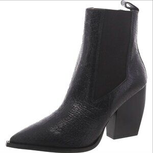 New ALLSAINTS Ria Black Size 11 Leather Croc Embossed Ankle Boots MSRP$379