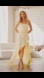 This high-low fit-and-flare dress strikes a bold balance between playfulness and allure with its soft cowl neckline and strapless silhouette. The lace-up back shapes the figure, while the ruffled skirt and side slit create fluid, eye-catching movement. Designed for moments that demand both drama and refined charm.