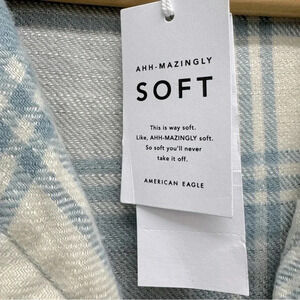 New AMERICAN EAGLE WOMEN Y2K GREYBLUEOVERSIZED FLANNEL BABYDOLL SHIRT