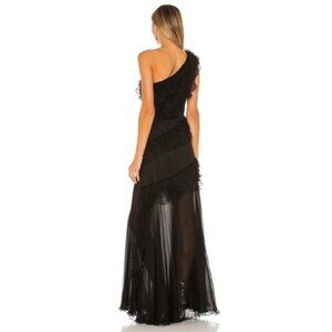 New AMUR Harlow Maxi Dress in Black Silk Sheer Formal One Shoulder Gown Size 4
