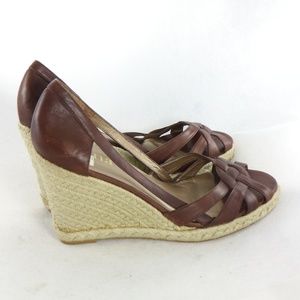 New A.N.A Brown Leather Cut Out Peep Toe Wedges