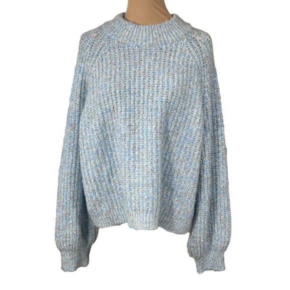 New A.N.A. Chunky Knit Sweater Women's Crew Neck Blue Combo XXL