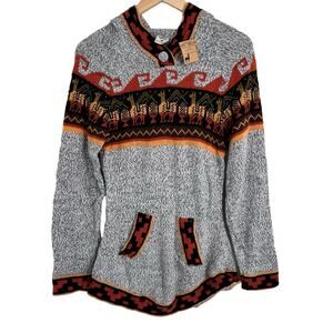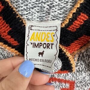 New ANDES Import PERUVIAN Alpaca Grat Orange HOODIE SWEATER Made in Peru