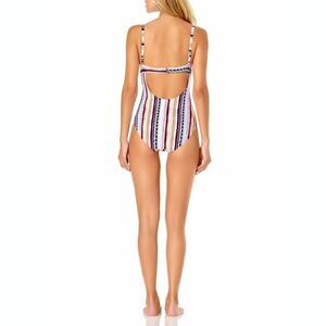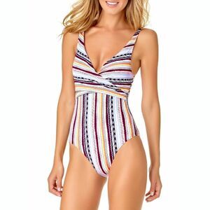 New! ANNE COLE Striped V-neck Women's One-Piece Swimsuit Bathing Suit Size 10