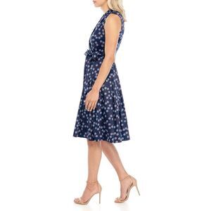 New! ANNE KLEIN Women's Dot Print Belted Faux Wrap Dress Size 8