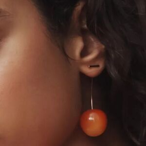 Add a playful touch to your outfit with these elegant red cherry drop earrings. Perfect for any occasion.